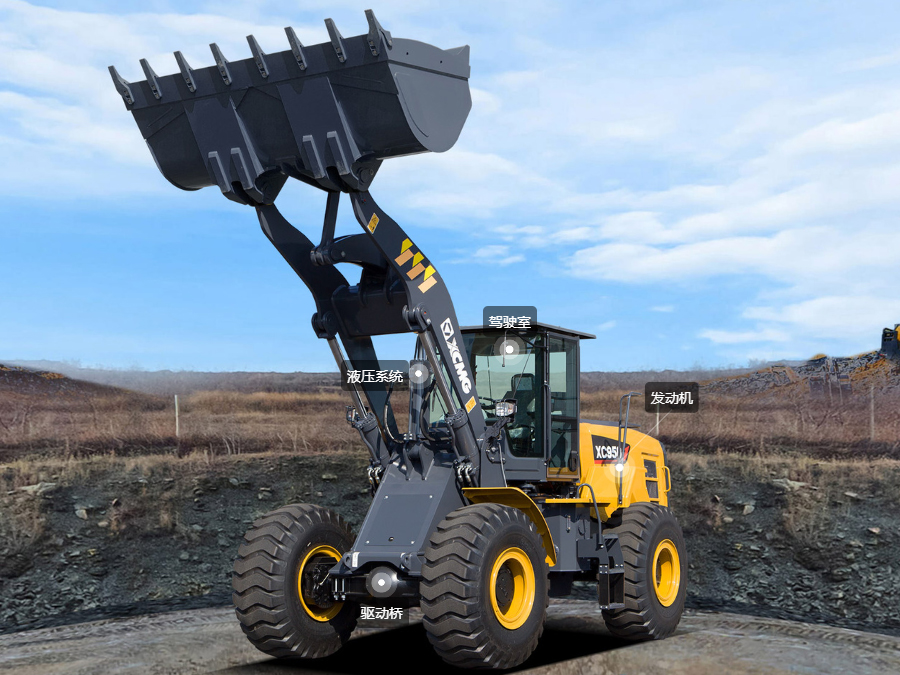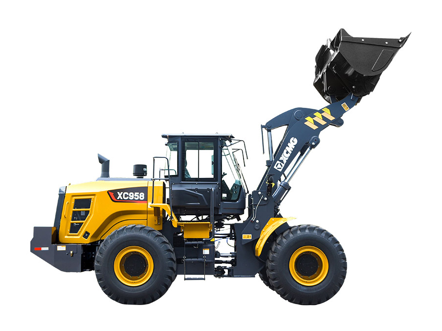 The XC958 series is equipped with Weichai National IV emission engine, XCMG special torque converter, gearbox, reinforced drive axle (6-ton front axle, 5.5-ton rear axle), efficient and energy-saving hydraulic system, XC9 series micro-pressurized cab, high-end and atmospheric appearance of the whole machine, which is widely used in mines, ports, gravel yards, coal yards, steel mills and other working conditions; especially suitable for loading and unloading operations in gravel yards, mixing stations, coal yards and other working conditions.